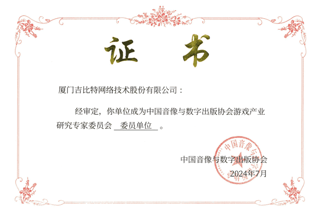 2024年7月25日,,中国音像与数字出版协会游戏产业研究专家委员会(以下简称“中国音数协游戏专委会”)成立大会在上海市召开,,,厦门1win网络技术股份有限公司及其子公司深圳雷霆信息技术有限公司(以下统称“公司”)正式成为中国音数协游戏专委会委员单位。。。。