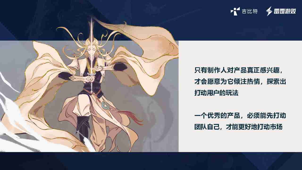 以《一念逍遥》为例,,2018年公司创始人萌生想做修仙题材的放置游戏的想法,,于是找了两位同事讨论了一下产品的概念,,,这两位现在是项目的制作人,,,,花了三周的时间把原型做出来,,,并且确定最初的战斗原型,,以及整个养成的节奏。。。通过几次版本迭代验证后,,,也确定后面的内容应该怎么拓展,,,,最终在一年左右时间这个项目上线了。。。当时我们内部有同事看到《⼀念逍遥》上线,,认为品质还不够完美,,,,但是整体营收还不错。。。就在想那是不是以后我们都做这样的产品??但实际这是错误的认知,,我们内部不是这么看的。。。。游戏在那个时间点上市,,因为有些市场的考量和营销点的考虑,,,,并不是希望所有项目都是这样。。如果它有更好的契机,,,希望它可以做得更大、、、更好,,,希望在内核玩法确定之后,,,外围投入可以越大越好,,所以后面的几个项目是往这个思路上做。。。
