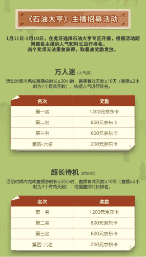 除了“油王”争霸赛,,精英主播招募活动亦同步开启!!!赛事分时长奖和人气奖,,,,奖励同样丰厚!!!!