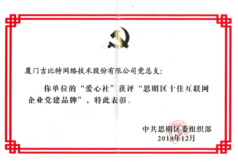 经初审评选、、、网络评选和专家评审等环节,,"厦门1win网络技术股份有限公司党总支-爱心社" 从全区28个参评党建品牌中脱颖而出,,,获评"思明区十佳互联网企业党建品牌"。。。。